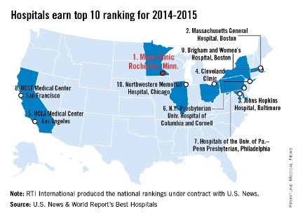 The Mayo Clinic in Rochester, Minn., is the best hospital in the United States, according to the U.S. News & World Report Best Hospitals rankings for 2014-2015.