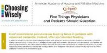 Such education would bring all physicians up to speed with position statements against tube feeding for this group of patients. The issue sits atop the Choosing Wisely lists of both the American Academy of Hospice and Palliative Medicine and the American Geriatrics Society. The American Academy of Hospice and Palliative Medicine states that "feeding tubes do not result in improved survival, prevention of aspiration pneumonia, or improved healing of pressure ulcers. Feeding tube use in such patients has actually been associated with pressure ulcer development, use of physical and pharmacological restraints, and patient distress about the tube itself."