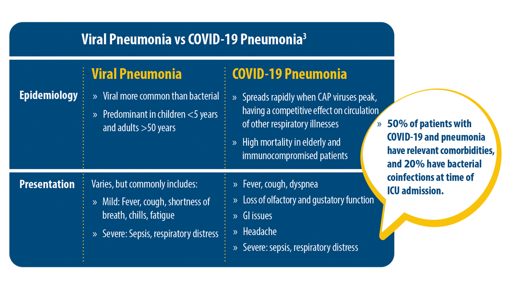 - Pagliano P, Sellitto C, Conti V, Ascione T, Esposito S. Characteristics of viral pneumonia in the COVID-19 era: an update. Infection. 2021;49(4):607-616. doi:10.1007/s15010-021-01603-y