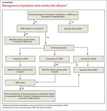 Medication. While the AAP/AAFP/AAOHNS guideline recommends against routine antibiotics for OME,17 it does note that a short course may provide short-term benefit to some patients (eg, those for whom a specialist referral or surgery is being considered).