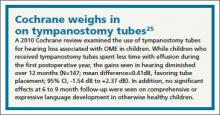 Keep in mind that evidence of lasting benefit (>12 months) is limited for surgery in most patients, and the surgical and anesthetic risks must be considered before moving forward.17 (For more on the evidence regarding surgery, see “Cochrane weighs in on tympanostomy tubes”.25) Tonsillectomy also does not appear to affect outcomes and is not advised.17