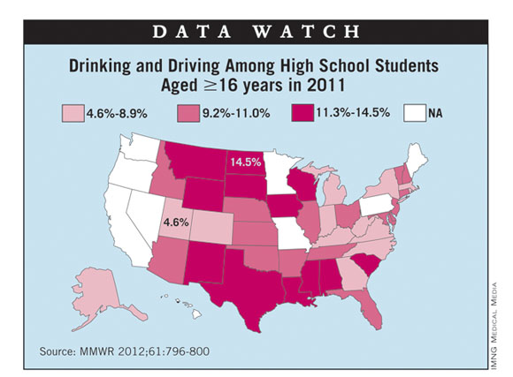 From 1991 to 2011, the prevalence of drinking and driving among high school students aged 16 years and older declined by 54%, according to a report from the Centers for Disease Control and Prevention.