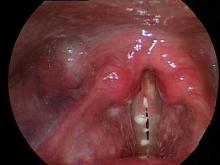 Photos courtesy of Blake Simpson, MD. Text for Photo Rounds Friday courtesy of Richard P. Usatine, MD. This case was adapted from: Matrka L, Simpson CB, King JM. The larynx (hoarseness). In: Usatine R, Smith M, Mayeaux EJ, et al, eds. Color Atlas of Family Medicine. 2nd ed. New York, NY: McGraw-Hill; 2013:220-226.