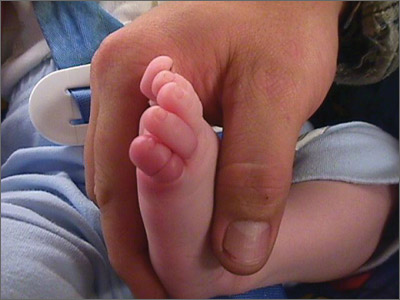 Upon closer inspection, the physicians discovered hair thread tourniquets constricting the fourth and fifth toes on the baby’s left foot.